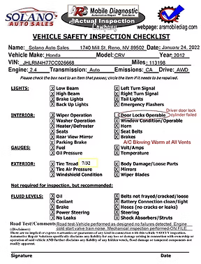 Car Dealer Safety Inspection Forms