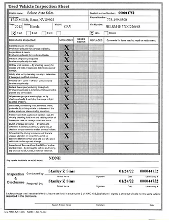 Nv State Car Sales Inspection Form