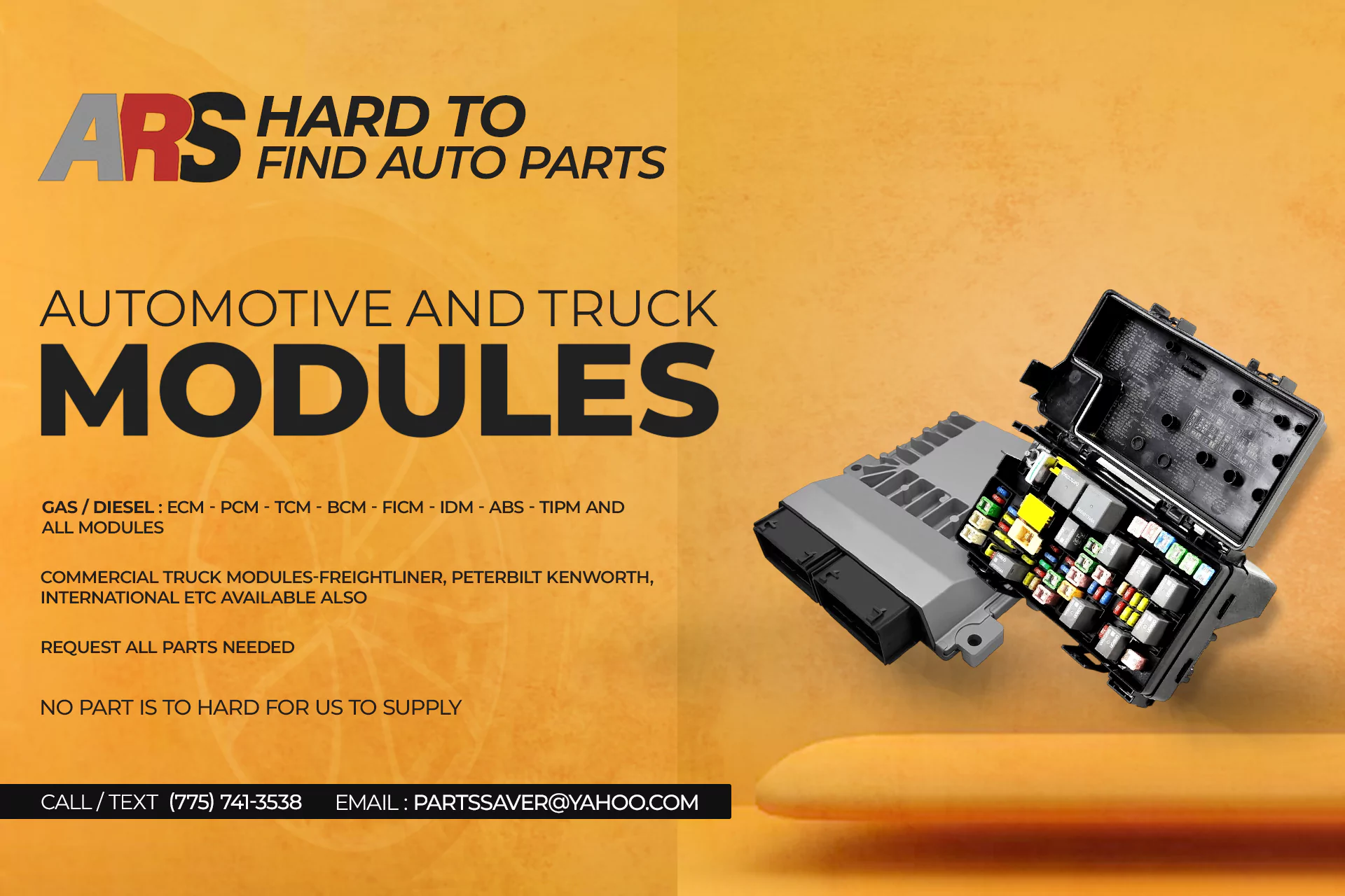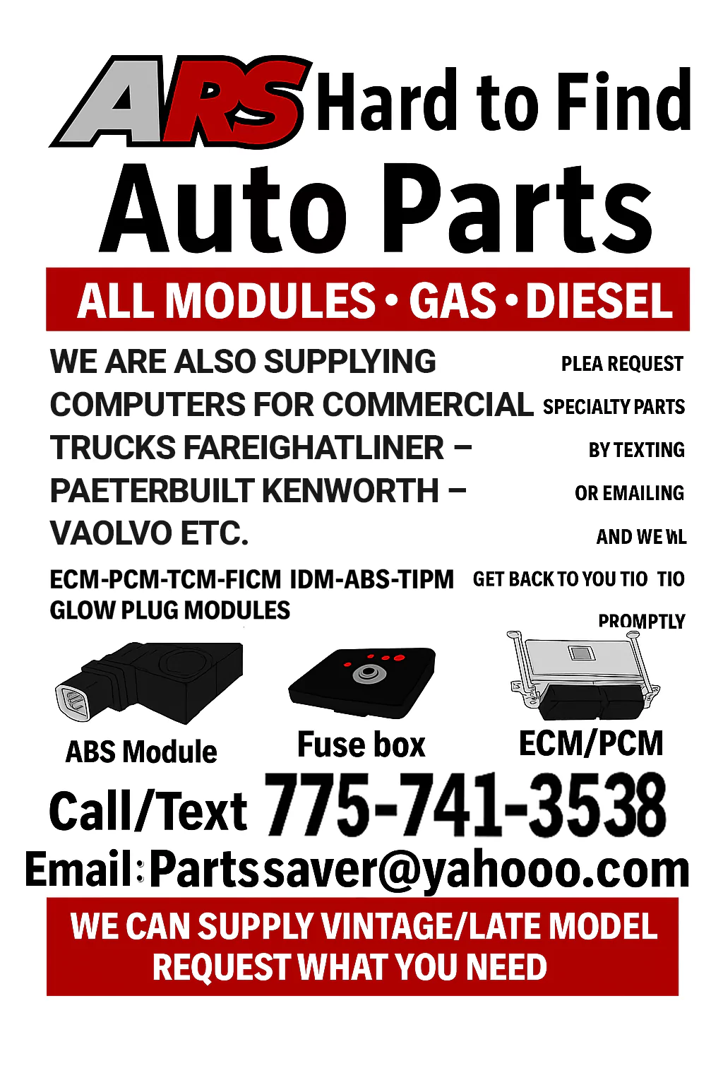 ARS Mobile Diagnostic specializes in selling automotive modules and locating hard-to-find car parts. Trust us to find the exact module you need.
